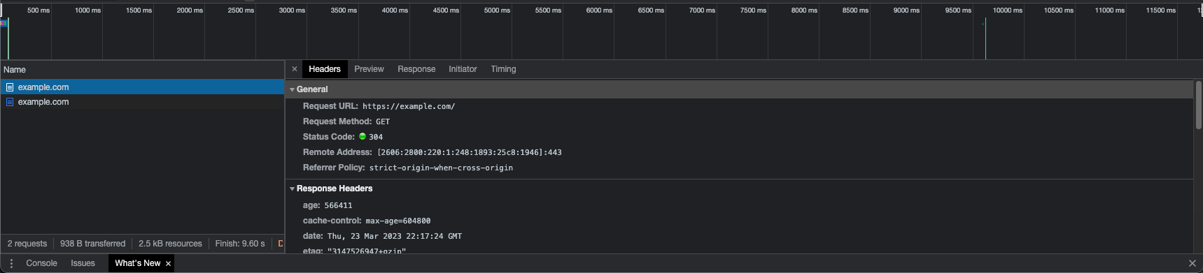 After you hit enter, you will notice the Network tab being populated by network requests. You can click on them individually to inspect the request further.