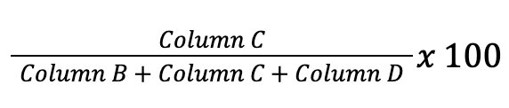 Go through each row and calculate the percentage of overlap. Here’s the formula to find that number: