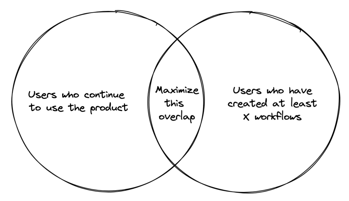 Maximize the overlap of users who created at least X workflows and your retained users