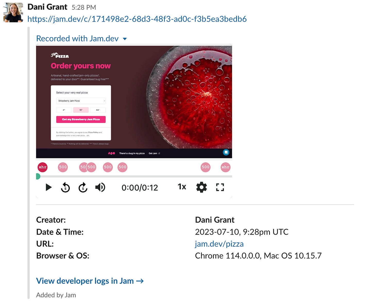 Anytime you capture a bug and drop a Jam link into a Slack channel…