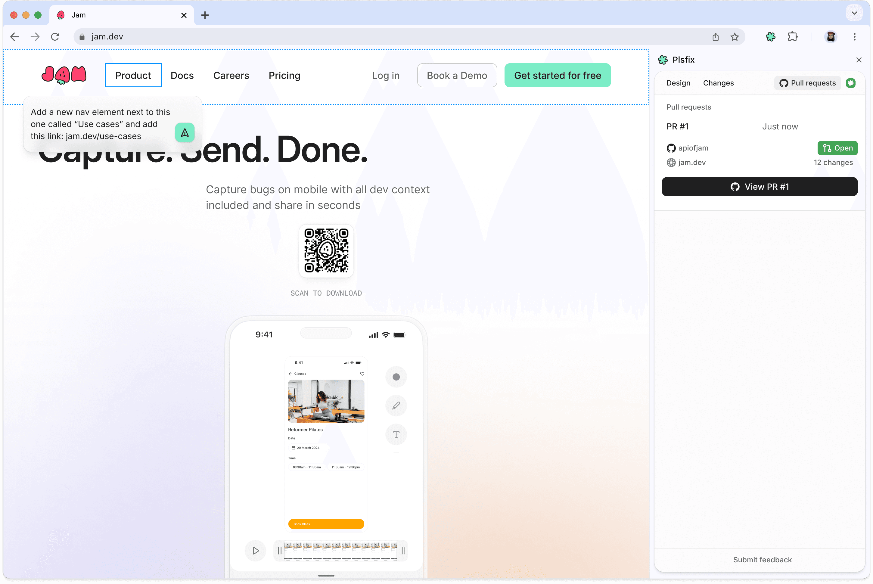 Compare before and after in your browser, keep what feels right, then create a pull request.