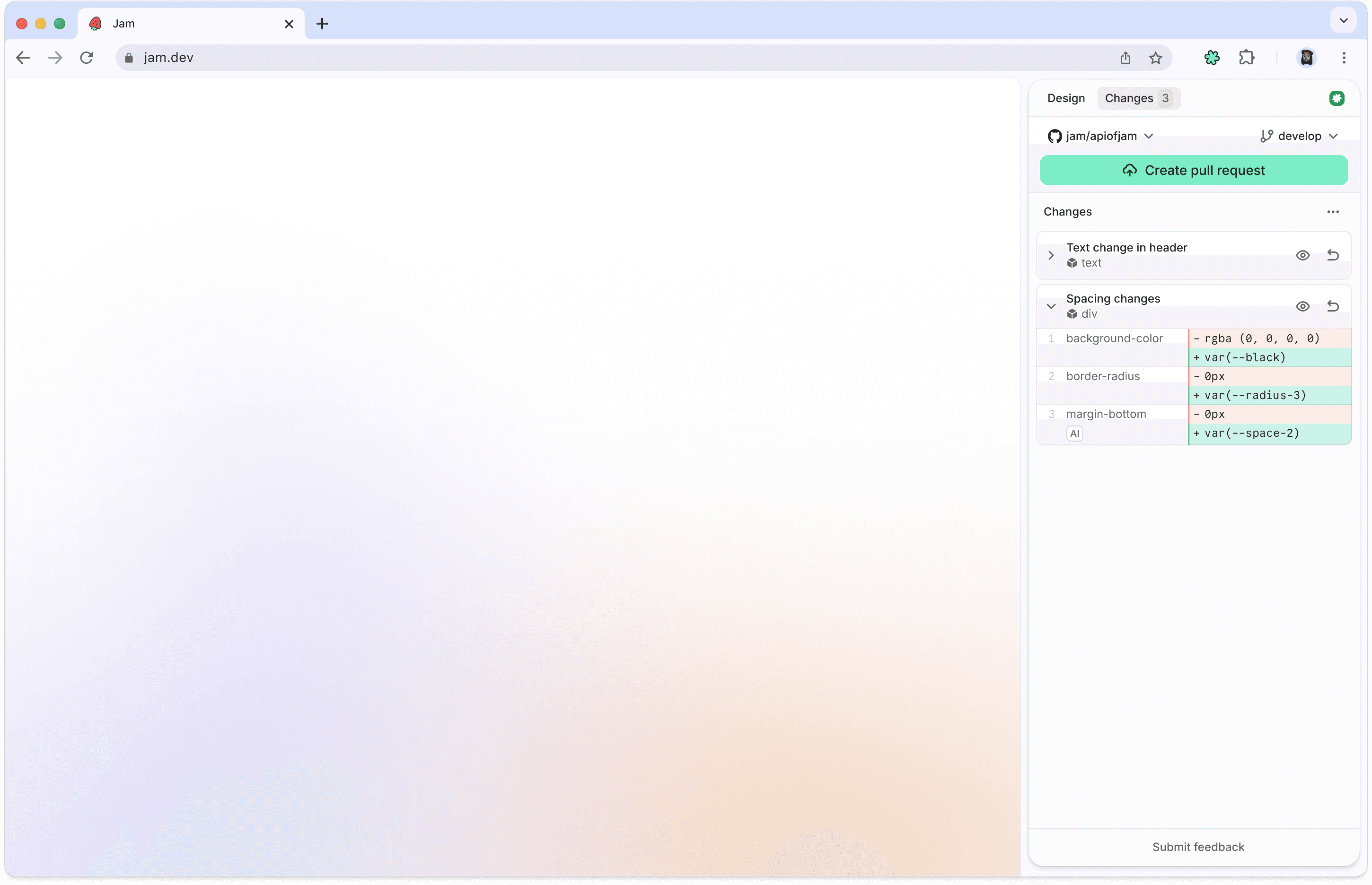 Let AI turn edits into short pull requests that reuse your tokens and components.
